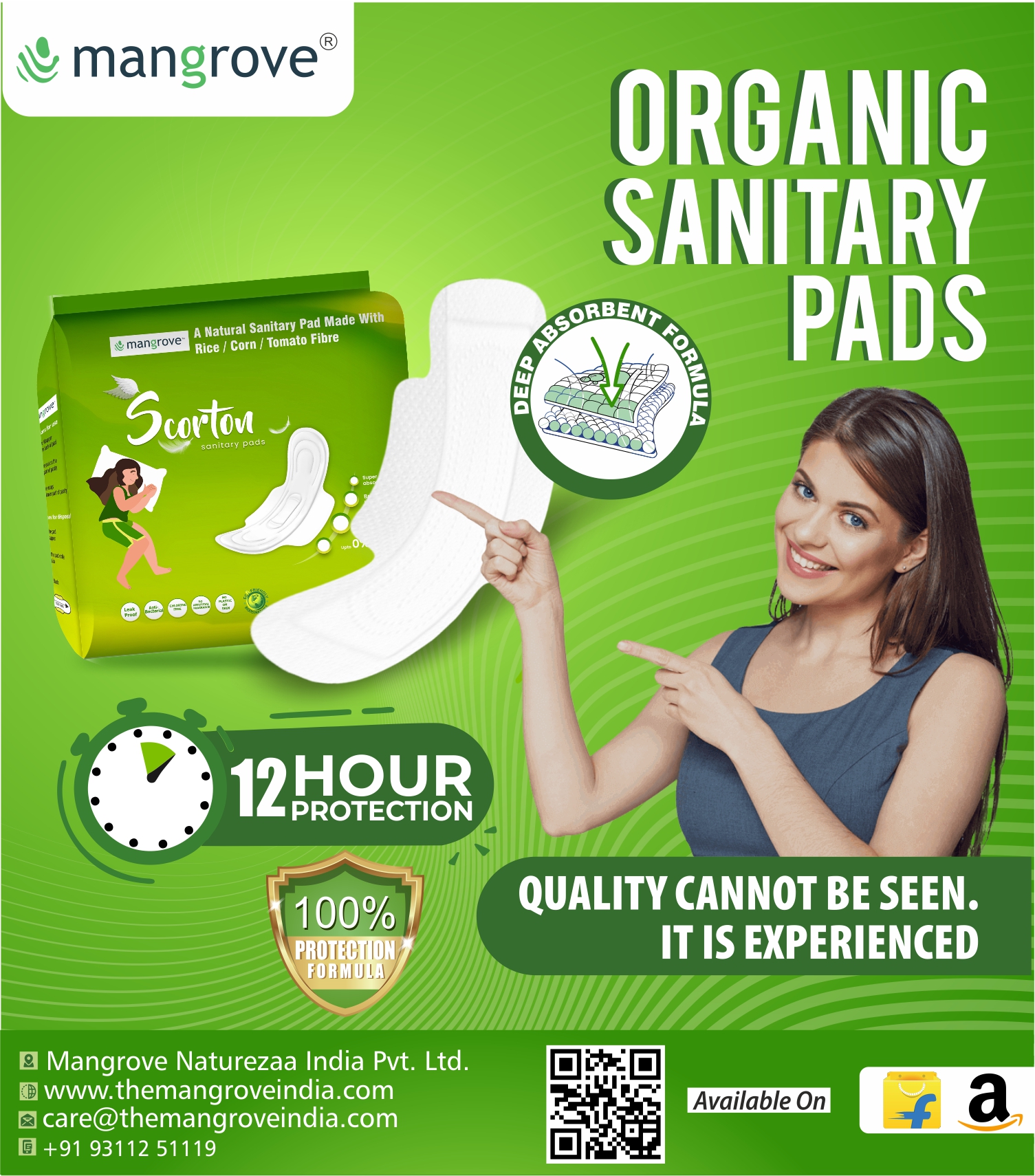 Mangrove Naturezaa India pads are gentle to your skin and kind to the planet. Bio-Degradable Products Environment Friendly Extremely Soft on Skin.